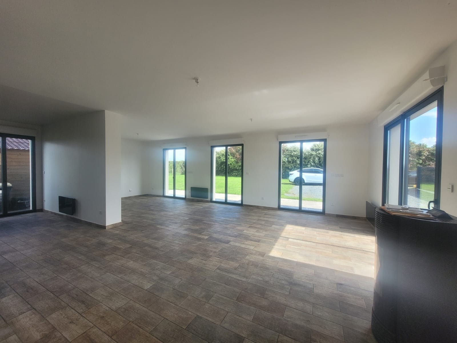 Pièces de vie: Grand séjour de 50 m2 très lumineux avec poêle, idéal pour recevoir